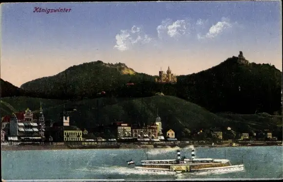Ak Königswinter am Rhein, Panorama, Dampfer