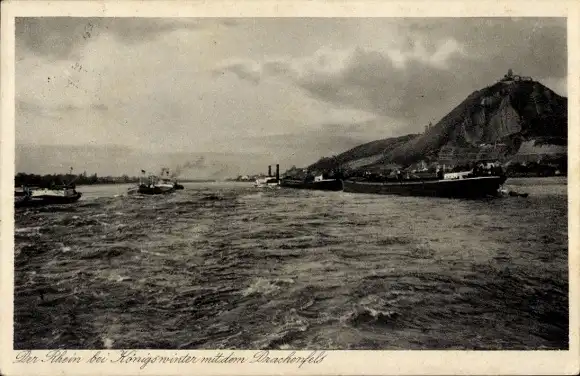 Ak Königswinter am Rhein, Rhein mit dem Drachenfels, Schiffe