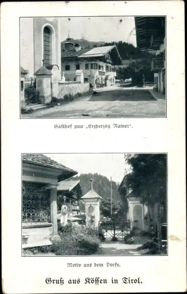 Ak Kössen in Tirol, Gasthof zum Erzherzog Rainer, Dorfmotiv