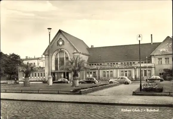 Ak Köthen in Anhalt, Bahnhof, Vorplatz, Autos