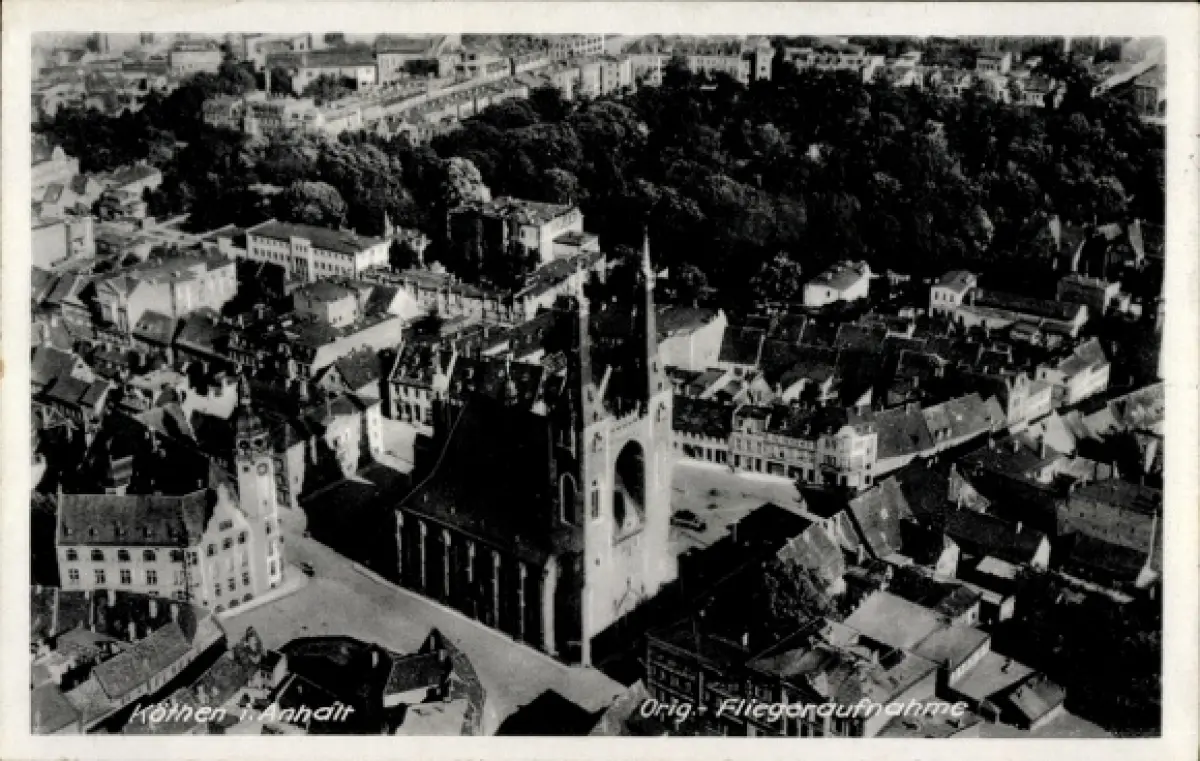 Ak Köthen in Anhalt, Fliegeraufnahme, Kirche