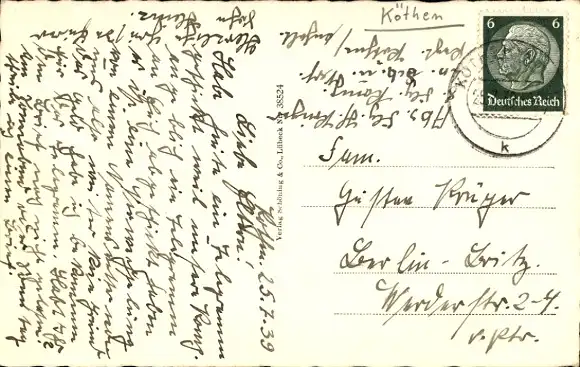 Zustand, siehe Scan, gelaufen, 1939 - ca 14 cm X 9 cm