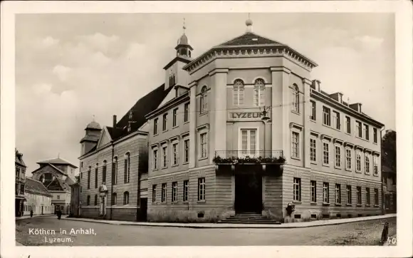 Ak Köthen in Anhalt, Lyzeum Gebäude, Straßenansicht, r Stil