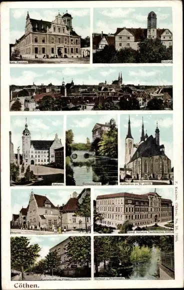 Ak Köthen in Anhalt, Postamt, Schloss, Rathaus, Gesamtansicht, Hospital