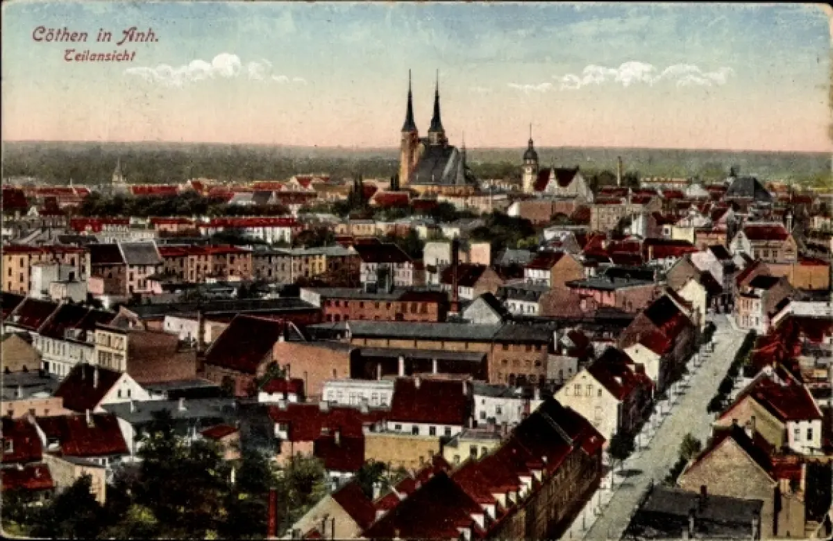 Ak Köthen in Anhalt, Teilansicht, Kirche