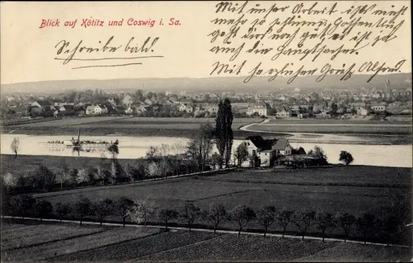 Ak Kötitz Coswig in Sachsen, Ortsansicht, Felder, Fluss