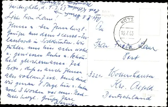 Zustand, siehe Scan, gelaufen, 1963 - ca 14 cm X 9 cm