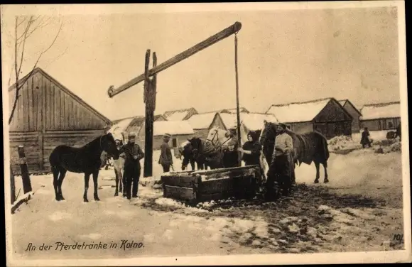 Ak Kolno Ostpreußen, Pferdetränke, Ostpreußenhilfe