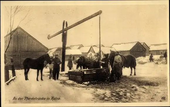 Ak Kolno Polen, Kriegsschauplatz 1. WK, An der Pferdetränke