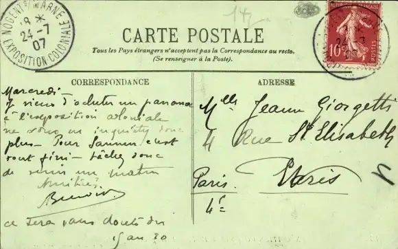 Zustand siehe Scan, gelaufen, 1907 - ca 14 cm X 9 cm