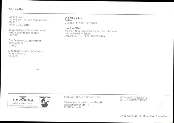 Ak Komiker Karl Dall, Portrait, Autogramm