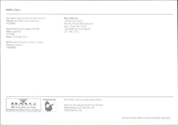 Ak Komiker Karl Dall, Portrait, Autogramm