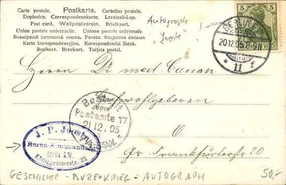 Ak Kommandant J. P. Jooste, Burenkrieg, Geschichte Südafrika, Autogramm