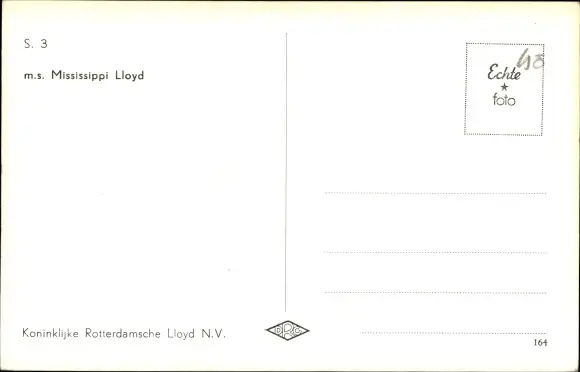 Ak Koninklijke Rotterdamsche Lloyd, KRL, Dampfer M.S. Mississippi Lloyd