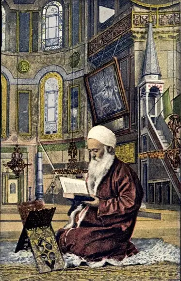 Ak Konstantinopel Istanbul Türkei, Hagia Sophia, vue de l'intérieur, Betender Muslim
