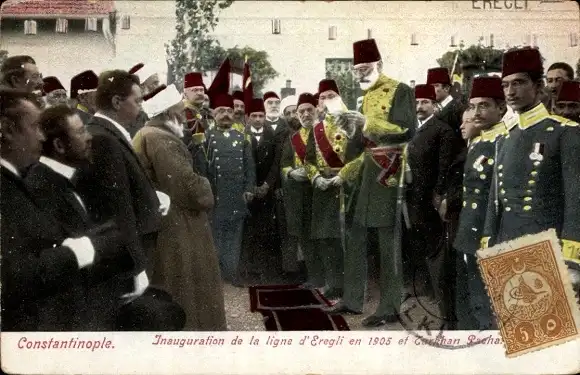 Ak Konstantinopel Istanbul Türkei, Inauguration de la ligne d'Eregli en 1905 et Turkhan Pacha