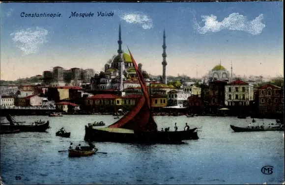 Ak Konstantinopel Istanbul Türkei, Mosquee Valide, Minarett, Boote, Häuser