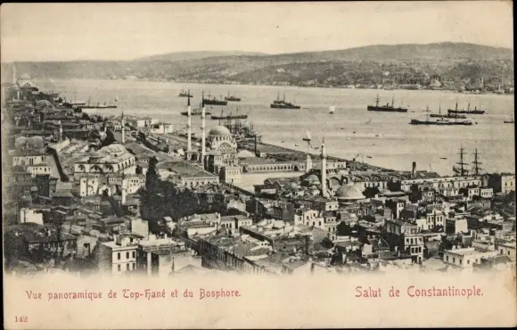 Ak Konstantinopel Istanbul Türkei, Vue panoramique de Top-Hane et du Bosphore