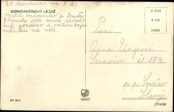 Ansichtskarte, Postkarte, Konstantinovy Lázne, Konstantinsbad, Plzeň, Pilsen