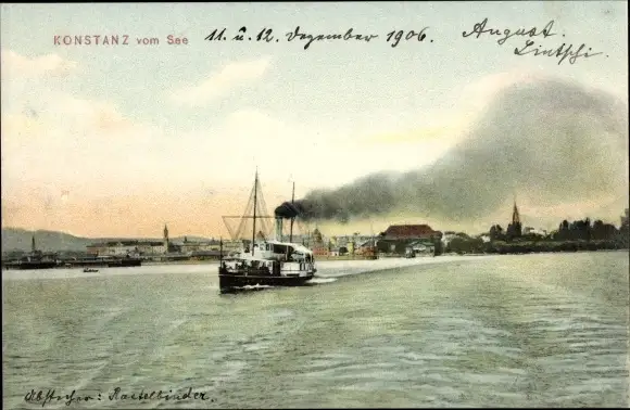 Ak Konstanz am Bodensee, Blick vom See aus, Dampfschiff