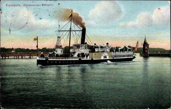 Ak Konstanz am Bodensee, Einfahrender Dampfer