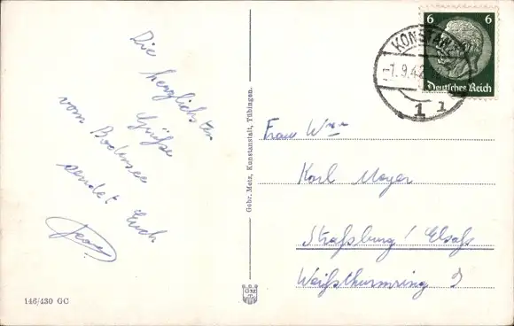Zustand, siehe Scan, gelaufen, 1942 - ca 14 cm X 9 cm