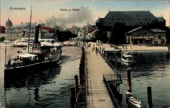Ak Konstanz am Bodensee, Hafen, Dampfer