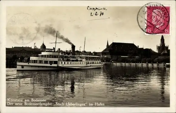 Ak Konstanz am Bodensee, Hafen, Dampfer Stadt Ueberlingen