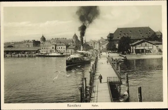 Ak Konstanz am Bodensee, Hafen, Dampfschiff