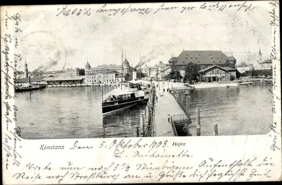 Ak Konstanz am Bodensee, Hafen, Dampfschiffe