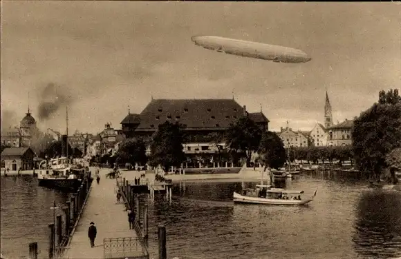 Ak Konstanz am Bodensee, Hafen, Zeppelin