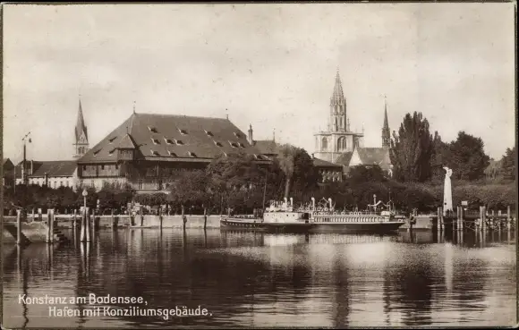 Ak Konstanz am Bodensee, Hafen mit Konziliumsgebäude