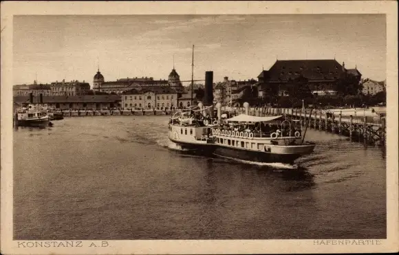 Ak Konstanz am Bodensee, Hafenpartie, Dampfer