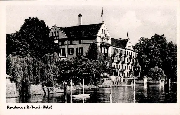 Ak Konstanz am Bodensee, Insel-Hotel, Außenansicht, Boot