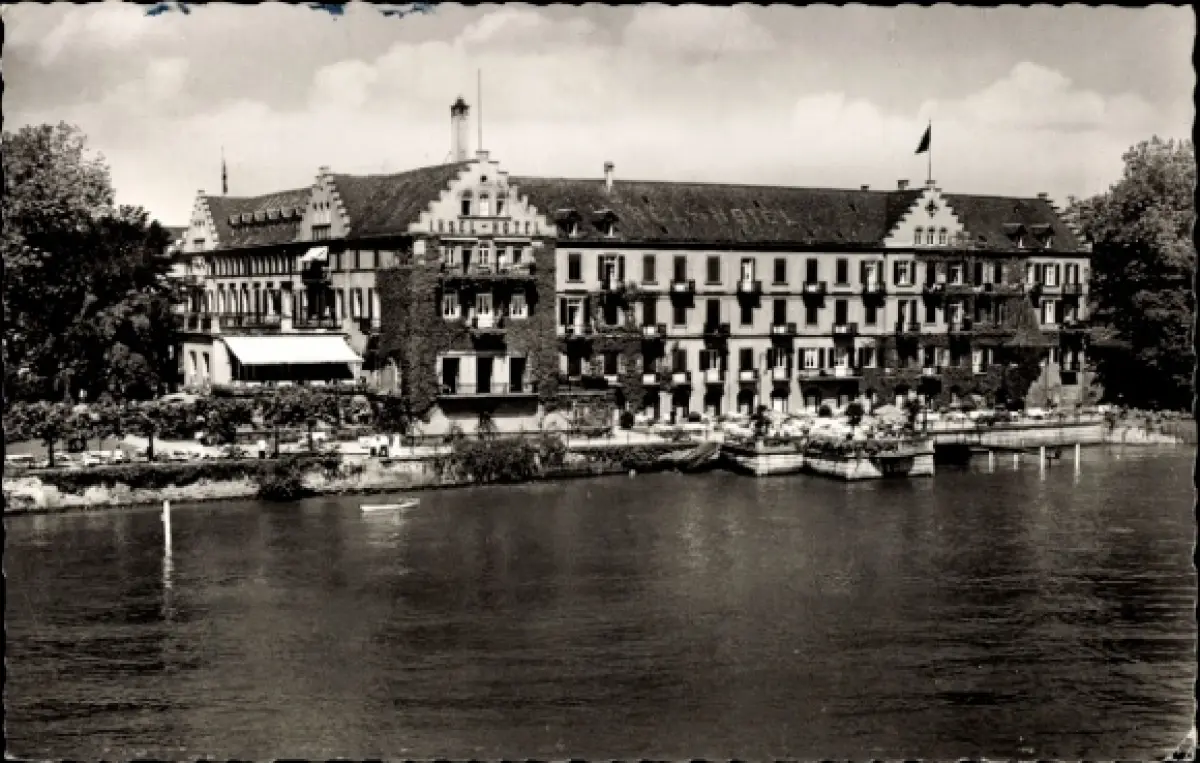 Ak Konstanz am Bodensee, Insel-Hotel, Bodensee, Garten, Wasser, Menschen