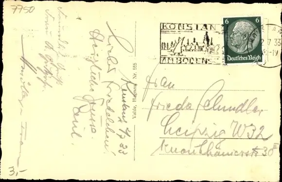 gelaufen 1933, Stempelspur, sonst guter Zustand
