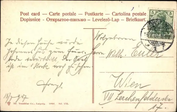 Zustand, siehe Scan, gelaufen, 1907 - ca 14 cm X 9 cm