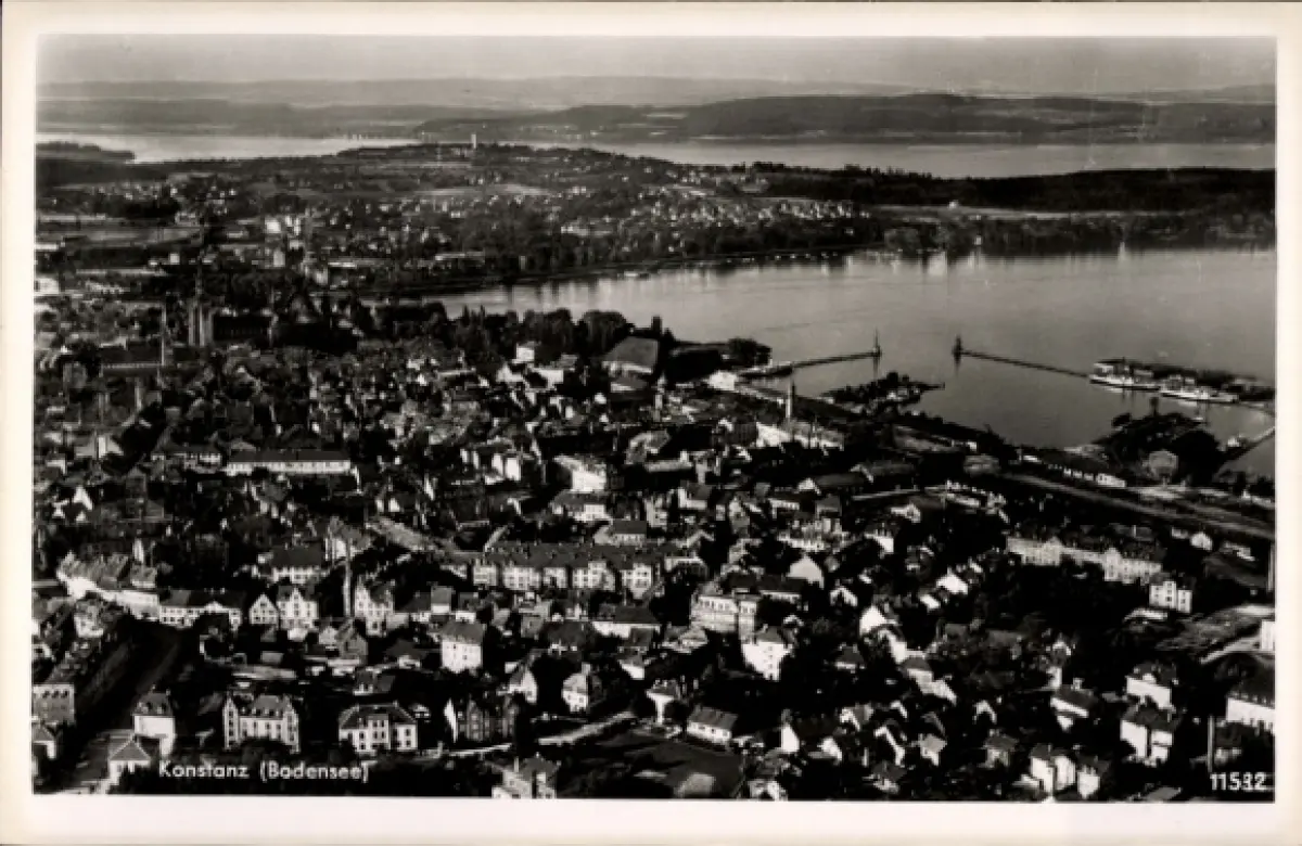 Ak Konstanz am Bodensee, Luftaufnahme von Bodensee, Stadtansicht