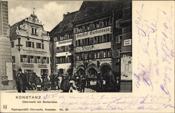 Ak Konstanz am Bodensee, Obermarkt mit Barbarossa
