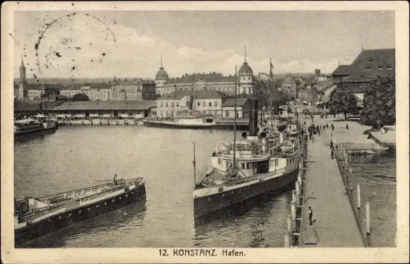 Ak Konstanz am Bodensee, Partie am Hafen, Schiffe