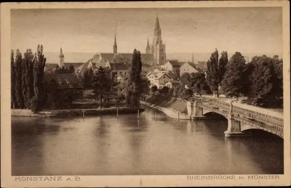 Ak Konstanz am Bodensee, Rheinbrücke mit Münster