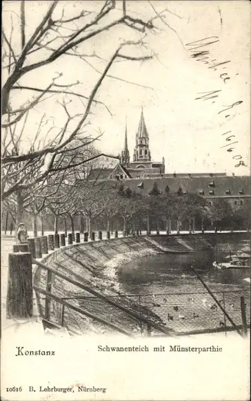 Ak Konstanz am Bodensee, Schwanenteich, Münster
