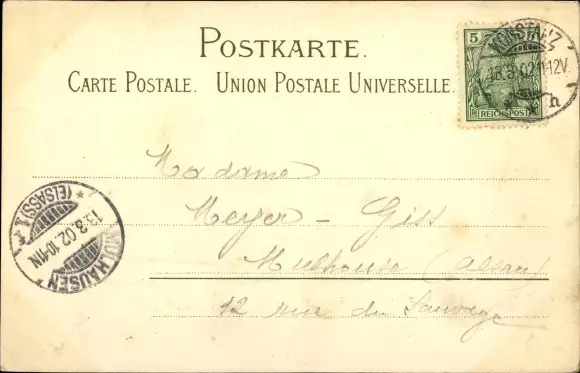 Zustand, siehe Scan, gelaufen, 1902 - ca 14 cm X 9 cm