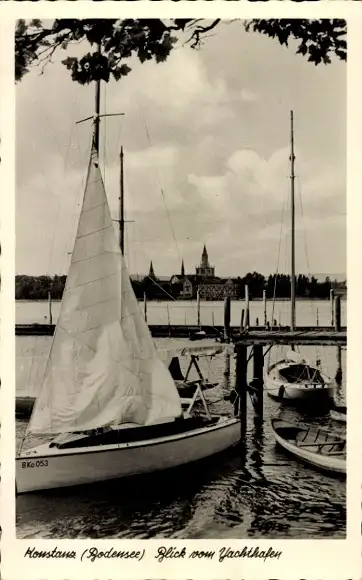 Ak Konstanz am Bodensee, Yachthafen, Segelboot