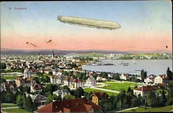 Ak Konstanz am Bodensee, Zeppelin überquert den Ort