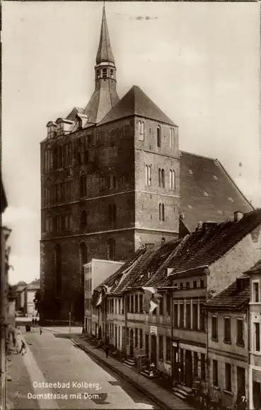 Ak Kołobrzeg Kolberg Pommern, Domstraße mit Ansicht vom Dom
