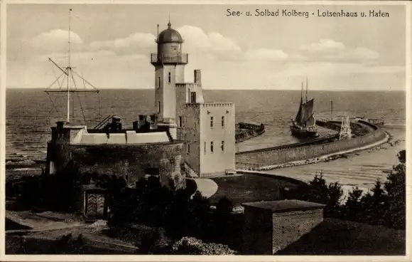 Ak Kołobrzeg Ostseebad Kolberg Pommern, Lotsenhaus und Hafen, Leuchtturm