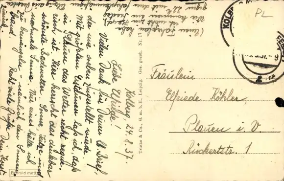 Zustand, siehe Scan, gelaufen, 1937 - ca 14 cm X 9 cm
