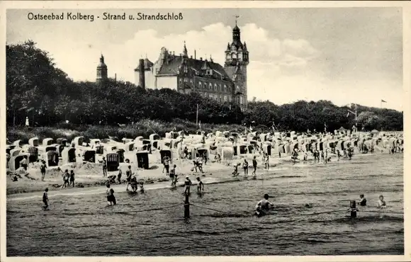 Ak Kołobrzeg Ostseebad Kolberg Pommern, Strand, Strandschloss