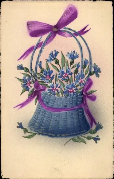 Ak Korb mit Kornblumen